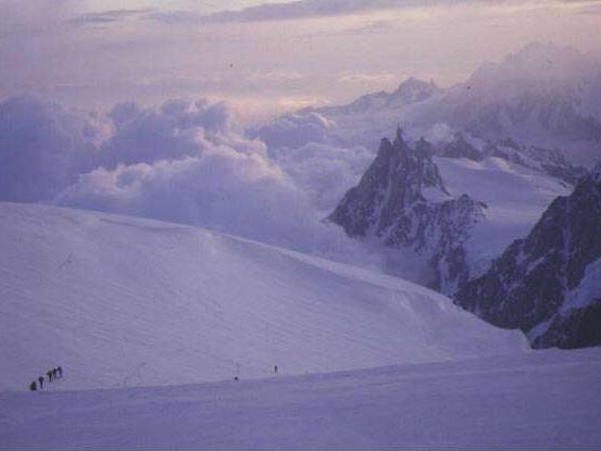 シャモニを出発し、 ロープウェイでプランゼ・レギーユへ。 登高を開始しグランミュレの小屋へ向かいます。