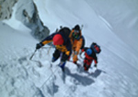 AG公募登山隊では7,000m以降に酸素を使いながらシェルパと日本人リーダーがサポートします。入山手続、ルート工作など手間の掛かることはスタッフに任せ、純粋に登山にだけ集中して下さい。